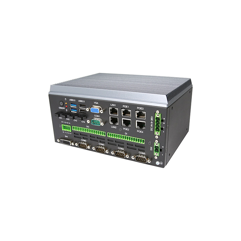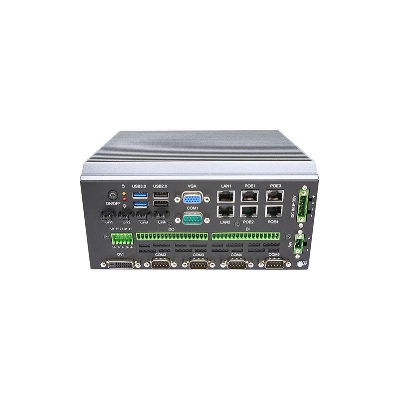 Intel? 7th Kaby Lake-U series FCBGA1356 Celeron/Core processor, dual-core, 6 x LAN, DVI/VGA, 7 x USB, 5 x COM, 4 x Lighting, 32bit DI/O, 9-36V DC power input, fan-less system